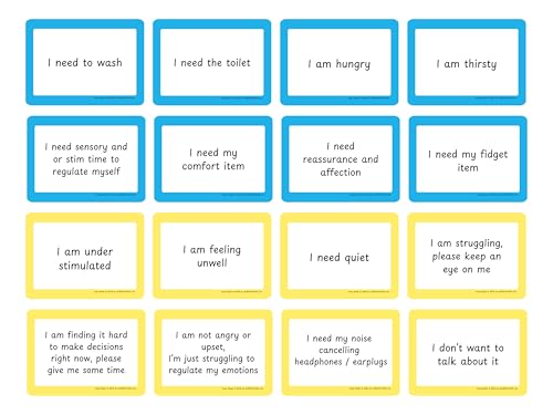 25 Double Sided Communication Cards: These cards facilitate clear and concise communication during non-verbal episodes especially for those with ADHD and Autism