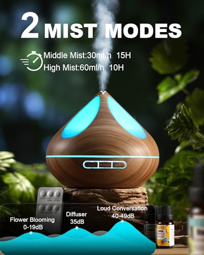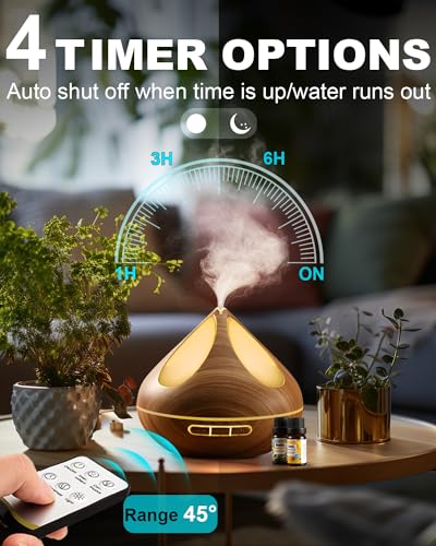 Specification: Diffusers 500ML with 8 Essential Oils Set, Aromatherapy Diffusers Air Freshener,Essential Oil Diffuser with Remote Control, 4 Timer and Waterless Auto-Off Cool Mist for Bedroom