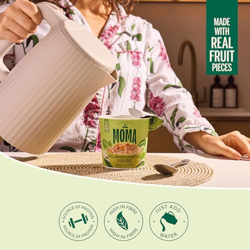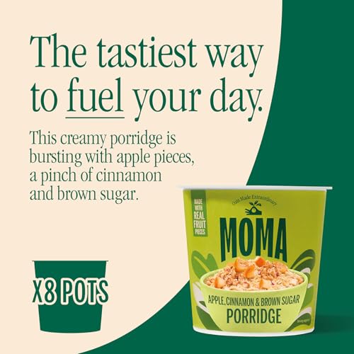 Specification: MOMA – Apple, Cinnamon & Brown Sugar Porridge Pot – Pack of 8 x 65g – Made with British Wholegrain Jumbo Oats • Source of Fibre & Protein • Ready in 3 Minutes • Contains Real Fruit