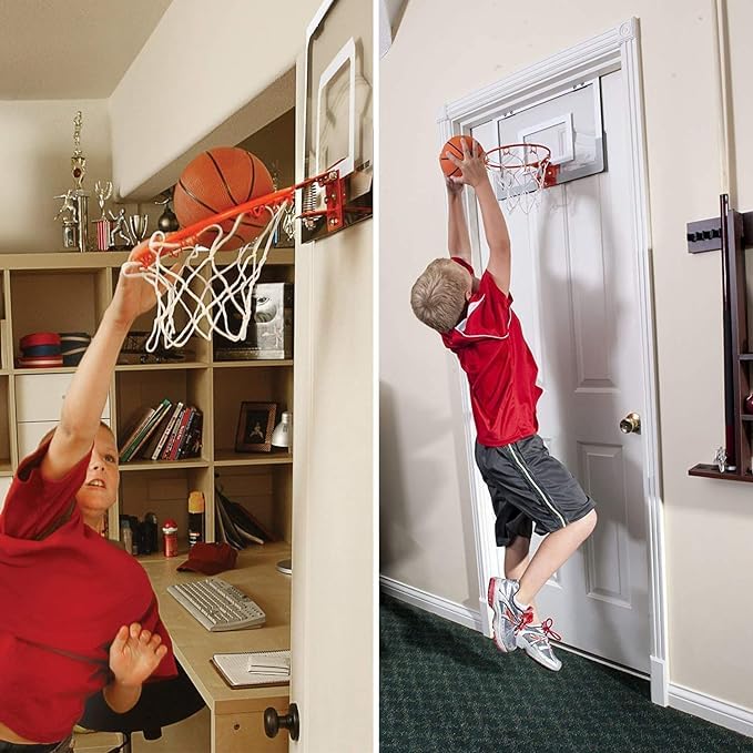 Specification: NaXew Indoor Basketball Hoop for Bedroom | Wall Mounted/Over Door Mini Basketball Hoop Includes Basketball and Net